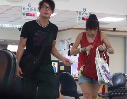 黃品源(左)拿著收據(jù),與蜜兒準(zhǔn)備領(lǐng)新身份證,2人無言也面無表情,正式結(jié)束婚姻關(guān)系。(圖片來自臺媒)