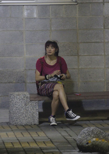 蜜兒孤單坐在路邊抽煙,神情有點(diǎn)落寞。(圖片來自臺媒)