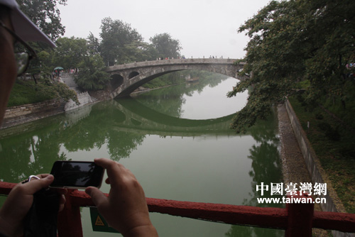 臺(tái)灣文化界人士在趙州橋前留影(中國(guó)臺(tái)灣網(wǎng)記者 蕪?fù)?nbsp; 攝)