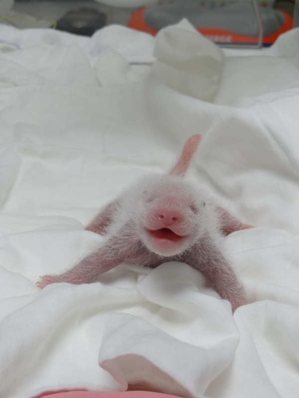 臺北市立動物園秘書張志華說,大熊貓寶寶“圓仔”,今天的體重已經達205.3克,奶量持續增加,11日喝了5餐,一共喝了64.4CC。而“圓仔”趴在保溫箱的被子上,被動物園保育員拍到,“圓仔”半趴立的姿勢,好像在探索新的世界,模樣相當可愛。尤其現在“圓仔”全身還是粉嫩白毛,不經意露出微笑,張開了沒有牙齒的嘴。