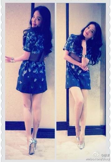 這天舒淇壓軸出場,一身藍色花卉圖案、兩截式的小洋裝,只用半透明的薄紗連結(jié),露出大片小蠻腰,性感破表,成為全場焦點。她腳上還踩著鑲滿透明寶石的高跟鞋,相當(dāng)搶眼,一到場就擺出多種俏皮姿勢,任攝影師拍攝。