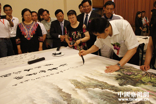 活動(dòng)上,來(lái)自臺(tái)灣屏東市的著名書(shū)畫(huà)家邱山藤先生說(shuō),兩岸文化同根同源、各具特色,兩岸書(shū)畫(huà)家們通過(guò)書(shū)畫(huà)藝術(shù)互相交流切磋,希望能攜手將中華文化藝術(shù)揚(yáng)名世界。