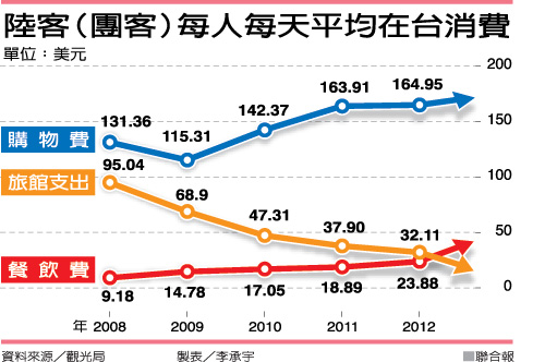 陸客(團客)每人每天平均在臺消費。圖片來源:臺灣《聯合報》
