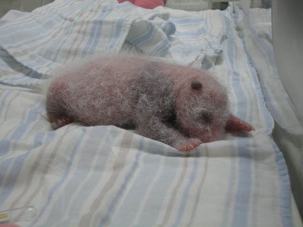 臺北市立動物園秘書張志華說,大熊貓寶寶“圓仔”剛出生時,可以看出大熊貓寶寶在母體內(nèi)發(fā)育還沒完善,就被生下來,3天大時看到鼻子突出來,4天大眼睛和耳朵的皮膚已經(jīng)看得到淡淡的黑色,6天大肩胛部的皮膚也開始慢慢轉(zhuǎn)黑。