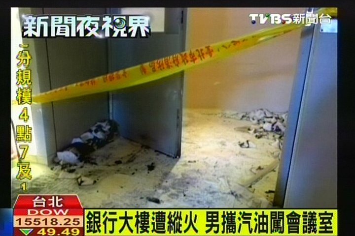 中國臺灣網7月25日消息 據臺灣TVBS電視臺報道,位在臺北市信義路上的大眾銀行遭人為縱火。