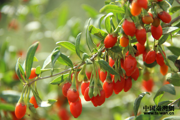 色彩艷麗、鮮紅欲滴的新鮮枸杞。(中國臺灣網 王文英 攝)