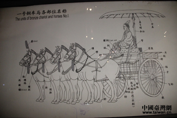 一號銅車馬各部位名稱。(中國臺灣網 王文英 攝)