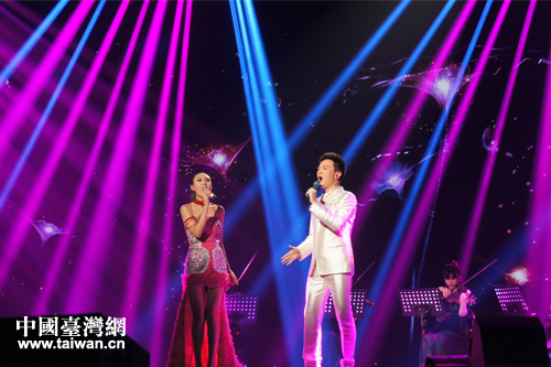 臺(tái)灣歌手卓文萱和馬來西亞歌手曹格深情對(duì)唱《梁山伯與朱麗葉》。(中國(guó)臺(tái)灣網(wǎng) 郜利敏 攝)
