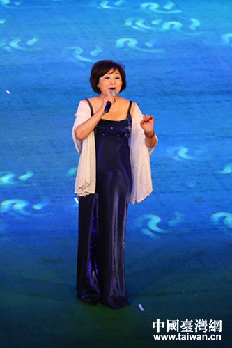 來自寶島臺灣的聲樂家呂麗莉在《兩岸客家情》文藝晚會獻唱《滿山春色》《月琴》。(中國臺灣網 郜利敏 攝)
