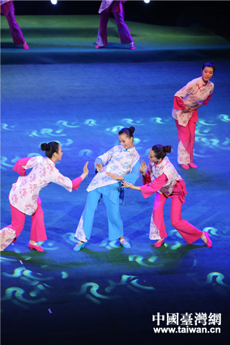 風情舞蹈《懷胎歌》展現了客家婦女十月懷胎的艱辛和母親對生活的希望和憧憬。(中國臺灣網 郜利敏 攝)
