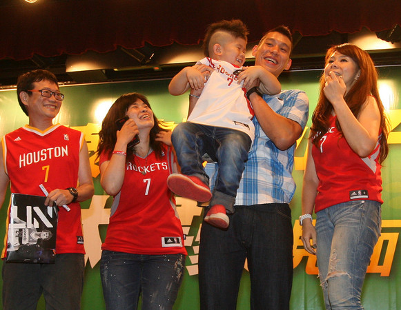 林書豪在見面會尾聲親切與球迷合影留念,并抱起一位3歲半的小球迷合影留念,這位小球迷可以算是林書豪的鐵桿粉絲,現(xiàn)場記者問他叫什么名字,他都直接回答以“林書豪”作答。(中國臺灣網(wǎng) 李帥)