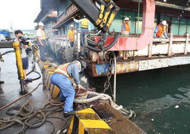 工作人員將纜繩吊起。(圖片來自臺媒)
