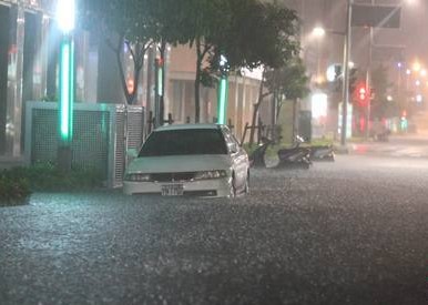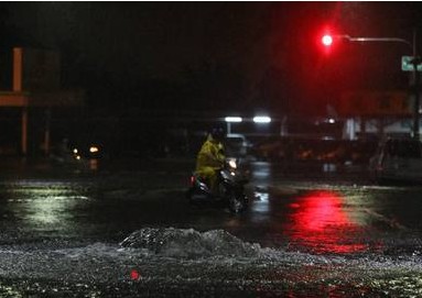 臺灣高雄今晨遭狂風暴雨 城區多處積水過膝(圖)