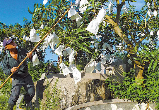 當(dāng)?shù)毓r(nóng)對在公墓種芒果見怪不怪,潘姓果農(nóng)說:“自有印象以來,兩者就共存。”他還自豪:“種在山坡地比較不會積水,會比平地種的更甜。”一名女果農(nóng)則說,在公墓種芒果已幾十年,“剛開始摘也會怕,久了就習(xí)慣了。”她還理直氣壯說,公所沒有收租金,“我們算是在使用跟管理,沒有使用,這里就雜草叢生。”