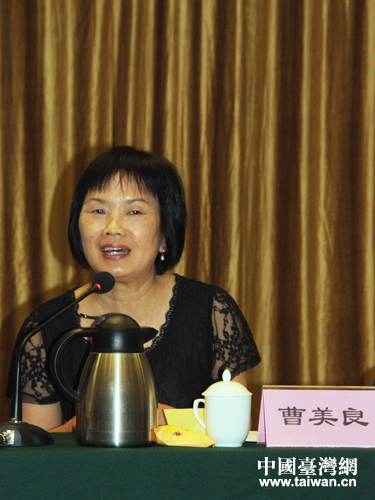 臺中市參訪團團長、臺中市政府秘書長曹美良在座談會上講話。(中國臺灣網 王偉 攝)