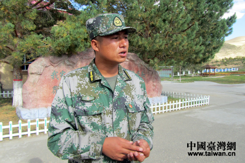 西北邊境第一連連長肖亮接受記者采訪。(中國臺灣網 王偉 攝)
