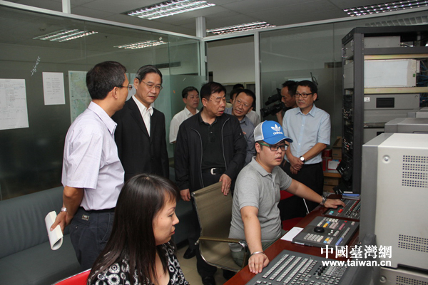 中臺辦、國臺辦主任張志軍、副主任葉克冬視察央視“海峽兩岸”欄目機房。