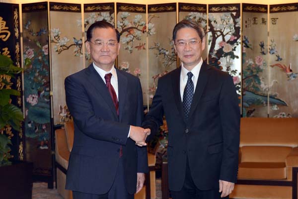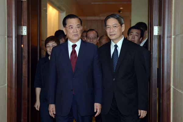 中共中央臺辦、國務院臺辦主任張志軍27日在杭州會見中國國民黨榮譽主席連戰。