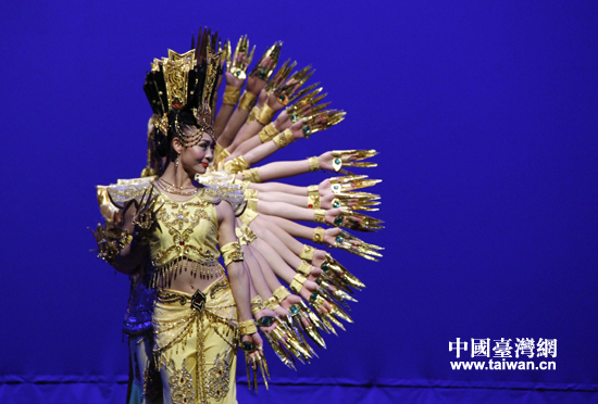 第六屆中華文化快車——北京心靈呼喚殘疾人藝術團9日晚間在彰化市員林演藝廳舉辦了主題為“我心飛翔”的歌舞晚會,千余名彰化的民眾觀看了演出。圖為北京心靈呼喚殘疾人藝術團表演大型古典舞蹈《千手觀音》。(中國臺灣網 普燕 攝)