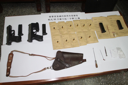 警方查獲的制式90手槍及11發子彈。(圖片取自臺媒)