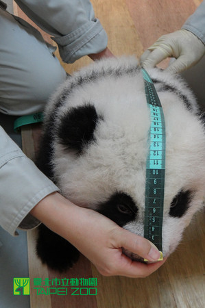 動物園發(fā)言人石芝菁表示,相較于剛出生時的嬌小體型,現在的圓仔已經讓人無法一手掌握,幫牠測量頭圍或腹圍時,保育員要放長一段皮尺才夠用。
