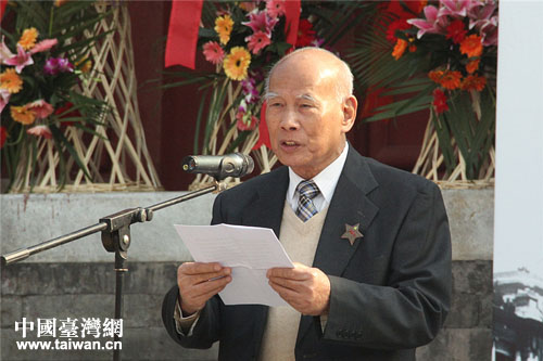 黃埔軍校同學(xué)會(huì)會(huì)長(zhǎng)林上元在開展儀式上發(fā)言。(中國(guó)臺(tái)灣網(wǎng) 劉承思 攝)