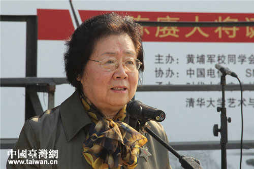 哈軍工北京校友會會長李慧芬在開展儀式上發言。(中國臺灣網 劉承思 攝)