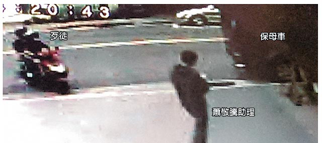一名在蕭敬騰住處旁開(kāi)動(dòng)物醫(yī)院的蔡先生說(shuō):“昨早(周日)10點(diǎn)半我看到一對(duì)年輕男子停在店門(mén)口角落,待到下午2點(diǎn)多,一直左顧右盼,感覺(jué)在勘查地形,后來(lái)就騎走了。我看到的是一臺(tái)紅色125的摩托車(chē),雙載!