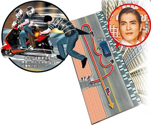 臺灣媒體制作的蕭敬騰被潑糞現(xiàn)場模擬圖。(圖片取自網(wǎng)絡(luò))
