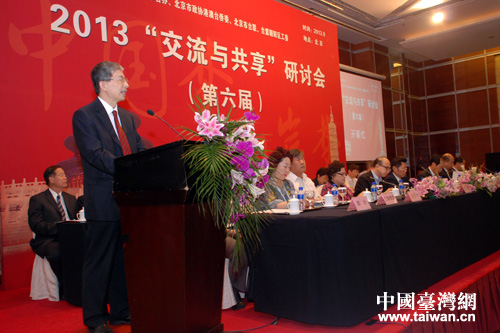 臺盟中央、市人大民宗僑委、市臺辦、市政協社法委、市臺聯、市各民主黨派、市工商聯、市黃埔同學會、市臺協、各區縣臺辦等單位的領導出席了第六屆“交流與共享”研討會的開幕式。市政協副主席、臺盟北京市委主委蔡國雄致開幕詞,來自臺灣進步黨的林國華先生、市臺聯副會長鄭大等先后在開幕式上發表講話。