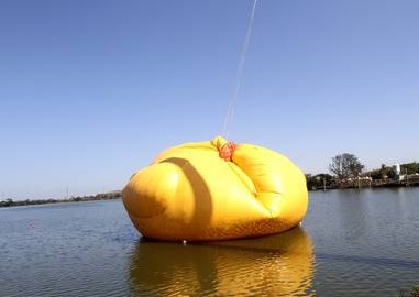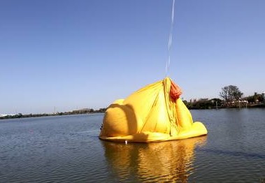 鴨皮拉起開始充氣。(臺媒圖)