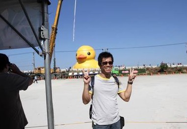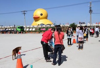 民眾開心與小鴨拍照。(臺媒圖)