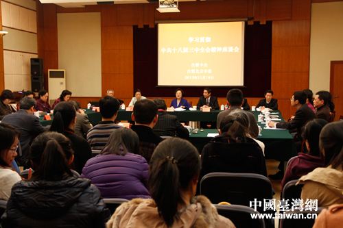 臺(tái)盟中央、臺(tái)盟北京市委11月18日在京舉行學(xué)習(xí)貫徹中共十八屆三中全會(huì)精神座談會(huì)。(中國(guó)臺(tái)灣網(wǎng) 王怡然 攝)