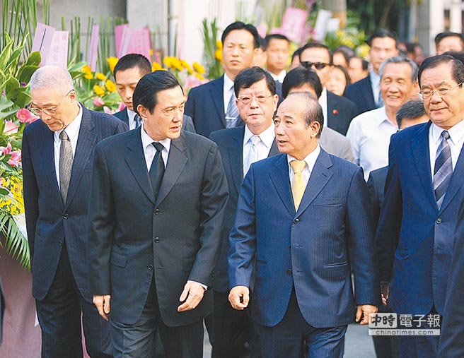 臺(tái)“立法院長(zhǎng)”王金平(右二)大哥王珠慶過世,馬英九(左二)吊唁,由王金平陪同步出靈堂。(圖片來自臺(tái)媒)
