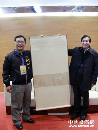 雙方互贈禮品。(中國臺灣網 王偉 攝)