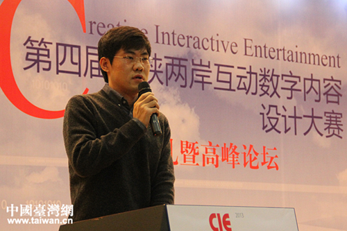 趣游科技集團(tuán)海外合作中心總監(jiān)吳曉寶在會上發(fā)言。(中國臺灣網(wǎng) 劉承思 攝)
