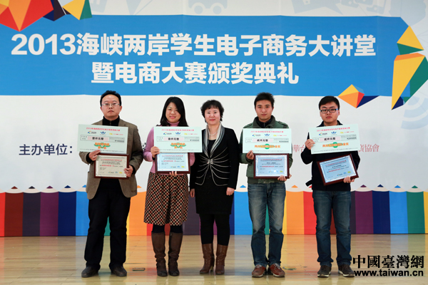 20日下午,由中國臺灣網(m.wxdmx.com)、海峽兩岸互聯網交流委員會、中華臺灣MIT正品推廣協會主辦的“2013海峽兩岸學生電子商務大講堂暨電商大賽頒獎典禮”在京舉行。圖為中國臺灣網總經理兼總編輯劉曉輝與兩岸獲獎學生代表合影。(中國臺灣網 于斯文 攝)