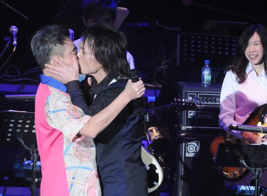 陳升(左)和伍佰男男吻。(臺(tái)媒圖)