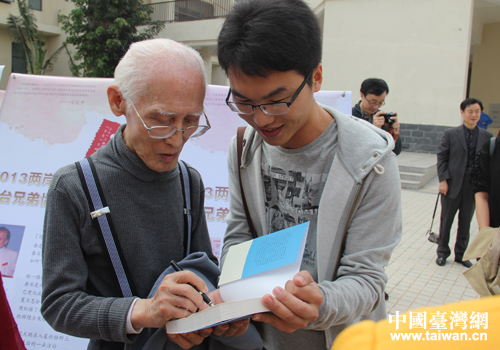 余光中先生為學生簽名。(中國臺灣網 李瑞艷 攝)