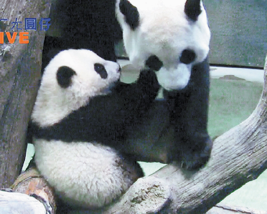 中國臺灣網(wǎng)1月16日消息 據(jù)臺灣《聯(lián)合報》報道,大熊貓寶寶“圓仔”昨天下午被媽媽“圓圓”吵醒,不知是否被“圓圓”咬到不舒服,“圓仔”生氣的揮“圓圓”好幾拳,母女倆互動甚是有趣。(中國臺灣網(wǎng) 朱煉)