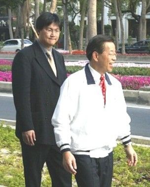 謝長廷(右)與林耀文。(圖片來自臺媒)