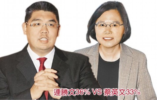 臺灣“旺旺中時(shí)民調(diào)中心”2013年8、9月間的臺北市長選情調(diào)查顯示,國民黨連勝文一枝獨(dú)秀贏得23%認(rèn)同度,民進(jìn)黨蔡英文氣勢非凡,也有18%青睞度。當(dāng)“雙文”對決,連勝文有36%支持度,蔡英文也獲得33%擁護(hù)度,雙方實(shí)力相當(dāng)。(圖片來源:臺灣中時(shí)電子報(bào))