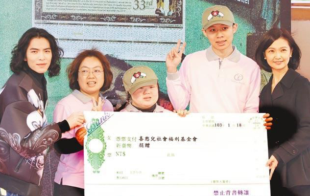 蕭敬騰(左)日前參加簽書會(huì)時(shí),捐出版稅給喜憨兒等弱勢(shì)團(tuán)體。(資料照片)