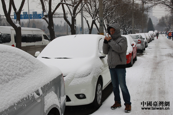 行人在興奮地拍攝雪景。(中國(guó)臺(tái)灣網(wǎng) 王文英攝)
