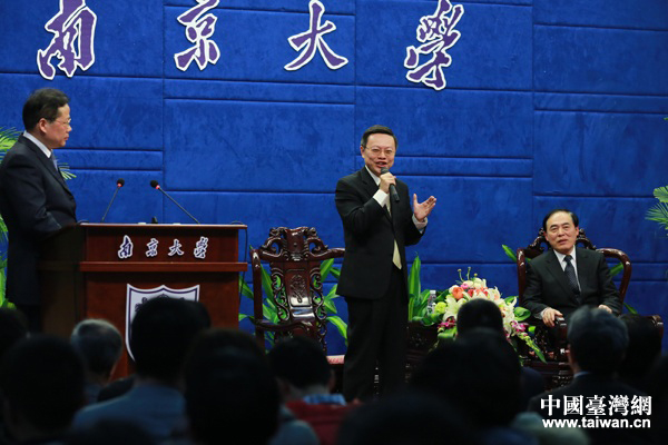 南大黨委副書記朱慶葆表示,南京大學與臺灣有特殊的歷史淵源。南京大學的前身就是后來遷臺的“中央大學”。兩年前,中國國民黨榮譽主席吳伯雄在南京大學被授予名譽博士學位,吳伯雄也曾經先后三次訪問南京大學。