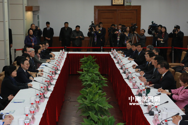 2月13日,臺灣方面大陸委員會負責人王郁琦來到上海社科院,與智庫學者進行座談。(中國臺灣網 田云鵬 攝)