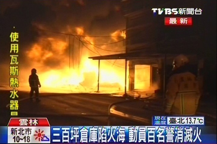 云林縣二侖一處倉庫竄出火苗,火勢(shì)一發(fā)不可收拾。(圖片來自臺(tái)灣TVBS)