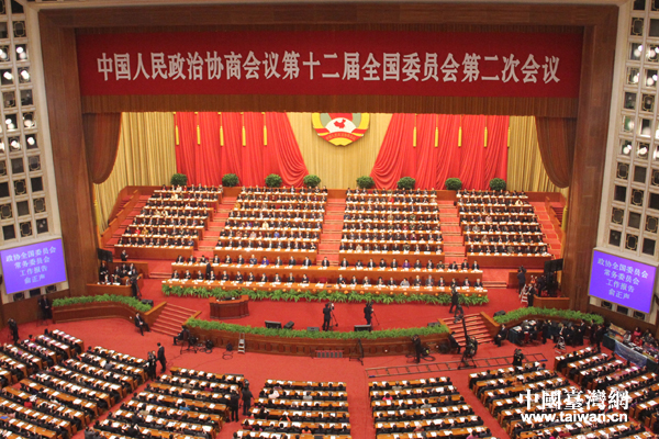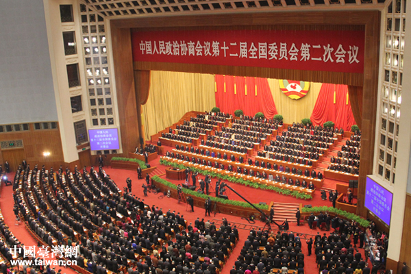3月3日下午3時,全國政協十二屆二次會議在人民大會堂舉行開幕會。(中國臺灣網 張潔 攝)