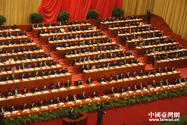 與會2000多名委員起立,向昆明“3·01”遇害無辜民眾默哀。(中國臺灣網 王怡然 攝)