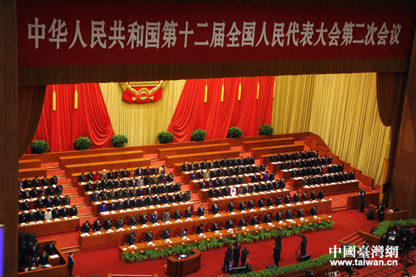中國臺灣網3月5日北京消息 今日上午9時,第十二屆全國人民代表大會第二次會議在北京人民大會堂開幕。全體與會人員為在3月1日晚云南昆明火車站發生的嚴重暴力恐怖事件中的遇難群眾默哀。